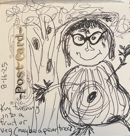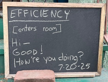 When I left behind my social media accounts (well, most of them; I still have BlueSky, but I’m not there often), I promised to keep posting my sometimes-daily-more-often-not-daily poetry here. I’ve actually been pretty reliable about doing that, which means I really haven’t posted much poetry on the porch for a long time. This one went up on the porch about a month ago, and I think it’s the only one I’ve put out there since I last shared one here on the blog. Again, been a minute. Ah, well. This was a hat tip to what was probably the most efficient entry into a room I’ve ever seen, a woman who literally walked in and said, all in one breath, “Hi—good! How’re you doing?” And with that, honestly, all of her social obligations were met.